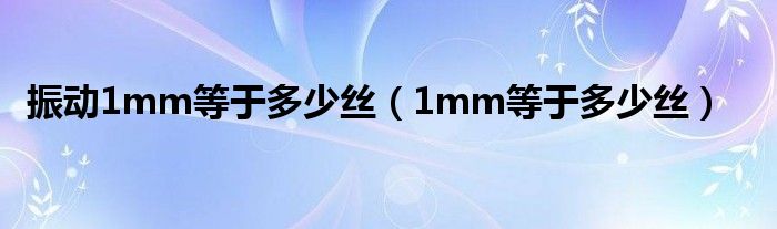 关于振动1mm等于多少丝,1mm等于多少丝这个很多人还不知道,今天菲菲来为大家解答以上的问题,现在让我们一起来看看吧!
