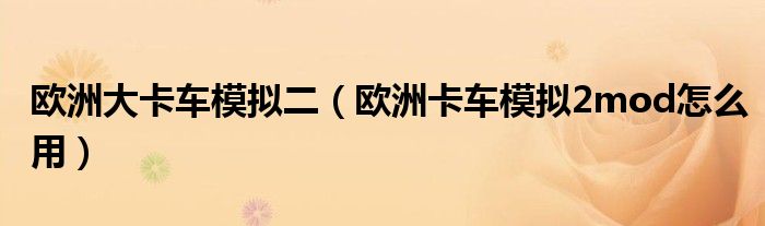关于欧洲大卡车模拟二,欧洲卡车模拟2mod怎么用这个很多人还不知道,今天菲菲来为大家解答以上的问题,现在让我们一起来看看吧!
