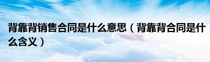 关于背靠背销售合同是什么意思,背靠背合同是什么含义这个很多人还不知道,今天菲菲来为大家解答以上的问题,现在让我们一起来看看吧!