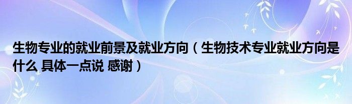 关于生物专业的就业前景及就业方向,生物技术专业就业方向是什么 具体一点说 感谢这个很多人还不知道,今天菲菲来为大家解答以上的问题,现在让我们一起来看看吧!