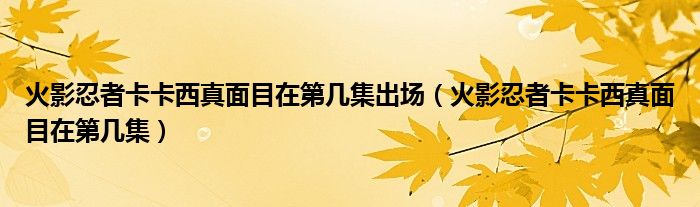 关于火影忍者卡卡西真面目在第几集出场,火影忍者卡卡西真面目在第几集这个很多人还不知道,今天菲菲来为大家解答以上的问题,现在让我们一起来看看吧!