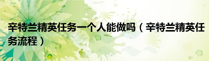 关于辛特兰精英任务一个人能做吗,辛特兰精英任务流程这个很多人还不知道,今天菲菲来为大家解答以上的问题,现在让我们一起来看看吧!