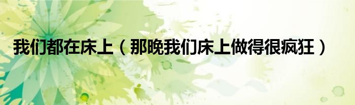 关于我们都在床上,那晚我们床上做得很疯狂这个很多人还不知道,今天菲菲来为大家解答以上的问题,现在让我们一起来看看吧!