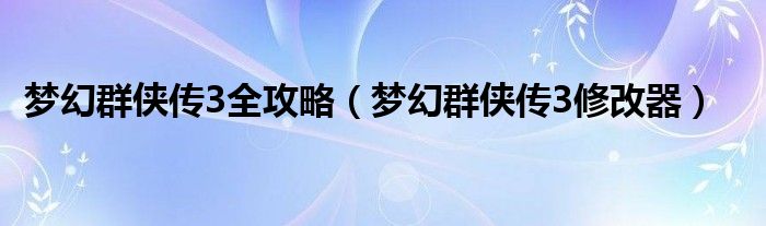 梦幻群侠传3全攻略(梦幻群侠传3修改器)