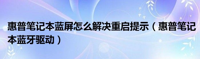 大家好,雨雨来为大家解答以上问题,惠普笔记本蓝屏怎么解决重启提示,惠普笔记本蓝牙驱动很多人还不知道,现在让我们一起来看看吧!