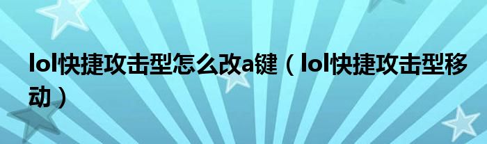 lol快捷攻击型怎么改a键,lol快捷攻击型移动这个很多人还不知道,小飞来为大家解答以上的问题。现在让我们一起来看看吧!