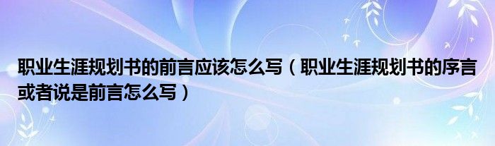 关于职业生涯规划书的前言应该怎么写,职业生涯规划书的序言或者说是前言怎么写这个很多人还不知道,今天菲菲来为大家解答以上的问题,现在让我们一起来看看吧!