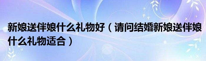 关于新娘送伴娘什么礼物好,请问结婚新娘送伴娘什么礼物适合这个很多人还不知道,今天菲菲来为大家解答以上的问题,现在让我们一起来看看吧!