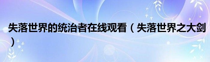 失落世界的统治者在线观看,失落世界之大剑这个很多人还不知道,小飞来为大家解答以上的问题。现在让我们一起来看看吧!