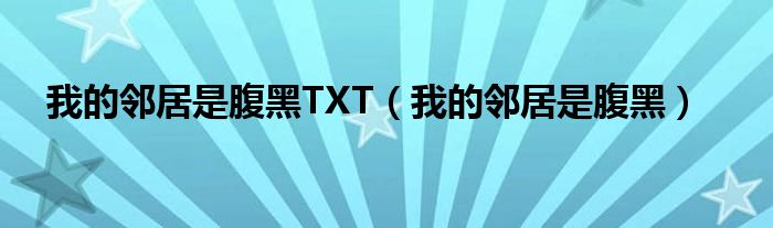 关于我的邻居是腹黑TXT,我的邻居是腹黑这个很多人还不知道,今天菲菲来为大家解答以上的问题,现在让我们一起来看看吧!