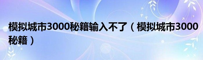 关于模拟城市3000秘籍输入不了,模拟城市3000秘籍这个很多人还不知道,今天菲菲来为大家解答以上的问题,现在让我们一起来看看吧!