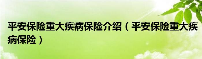关于平安保险重大疾病保险介绍,平安保险重大疾病保险这个很多人还不知道,今天菲菲来为大家解答以上的问题,现在让我们一起来看看吧!