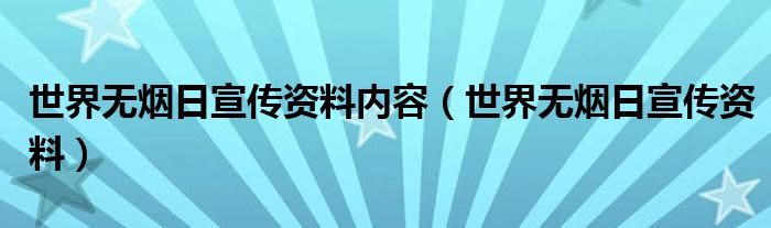 关于世界无烟日宣传资料内容,世界无烟日宣传资料这个很多人还不知道,今天菲菲来为大家解答以上的问题,现在让我们一起来看看吧!