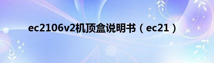 关于ec2106v2机顶盒说明书,ec21这个很多人还不知道,今天菲菲来为大家解答以上的问题,现在让我们一起来看看吧!