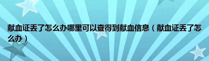 献血证丢了怎么办哪里可以查得到献血信息(献血证丢了怎么办)