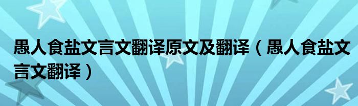 愚人食盐文言文翻译原文及翻译(愚人食盐文言文翻译)