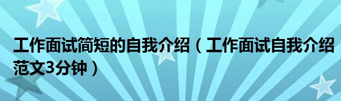 关于工作面试简短的自我介绍,工作面试自我介绍范文3分钟这个很多人还不知道,今天菲菲来为大家解答以上的问题,现在让我们一起来看看吧!