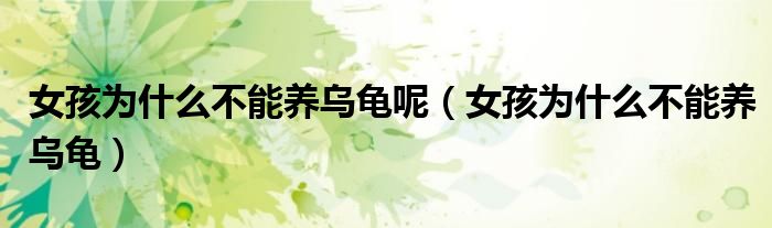 1、为什么女生不能养乌龟?养乌龟会增加室内湿度。乌龟不会像水生动物一样在水里呆那么久,而是可以固定在一个地方。乌龟可以在家里自由活动。它全身湿漉漉的在房间里爬来爬去,所以房子会比较潮湿,女生不要长时间待在湿冷的环境里。