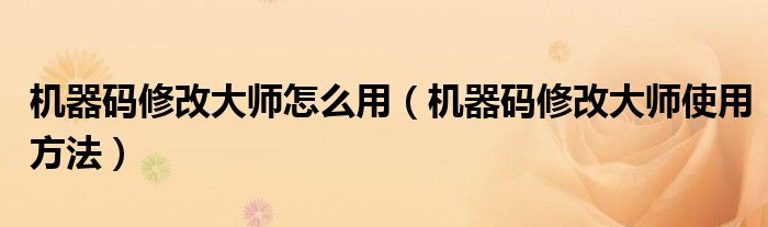 关于机器码修改大师怎么用,机器码修改大师使用方法这个很多人还不知道,今天菲菲来为大家解答以上的问题,现在让我们一起来看看吧!