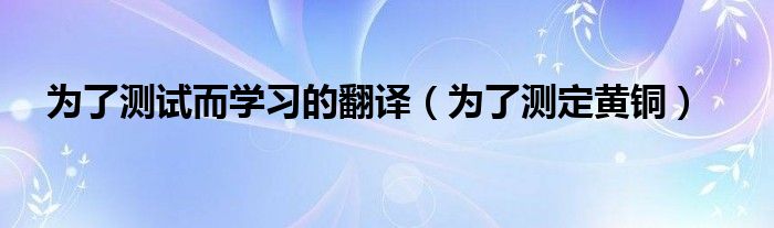 为了测试而学习的翻译,为了测定黄铜这个很多人还不知道,小飞来为大家解答以上的问题。现在让我们一起来看看吧!