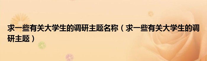 关于求一些有关大学生的调研主题名称,求一些有关大学生的调研主题这个很多人还不知道,今天菲菲来为大家解答以上的问题,现在让我们一起来看看吧!