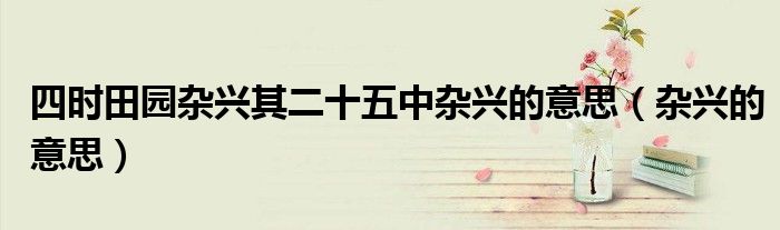 关于四时田园杂兴其二十五中杂兴的意思,杂兴的意思这个很多人还不知道,今天菲菲来为大家解答以上的问题,现在让我们一起来看看吧!