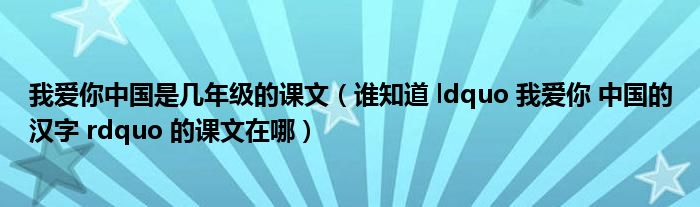关于我爱你中国是几年级的课文,谁知道 ldquo 我爱你 中国的汉字 rdquo 的课文在哪这个很多人还不知道,今天菲菲来为大家解答以上的问题,现在让我们一起来看看吧!
