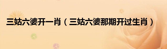 大家好,小晋来为大家解答以下问题,关于三姑六婆开一肖,三姑六婆那期开过生肖很多人还不知道,今天让我们一起来看看吧!