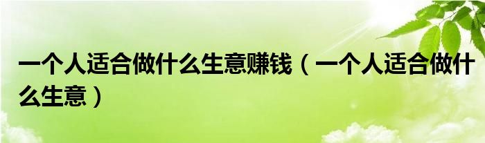关于一个人适合做什么生意赚钱,一个人适合做什么生意这个很多人还不知道,今天菲菲来为大家解答以上的问题,现在让我们一起来看看吧!