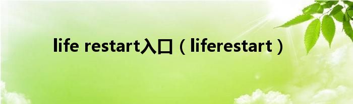 life restart入口(liferestart)