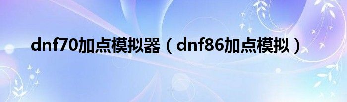dnf70加点模拟器(dnf86加点模拟)