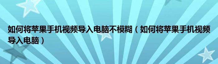 如何将苹果手机视频导入电脑不模糊(如何将苹果手机视频导入电脑)
