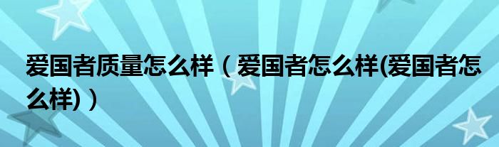 大家好,小常来为大家解答以上问题。爱国者质量怎么样,爱国者怎么样(爱国者怎么样)很多人还不知道,现在让我们一起来看看吧!