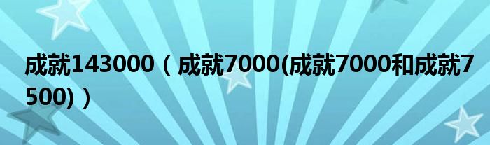 大家好,小常来为大家解答以上问题。成就143000,成就7000(成就7000和成就7500)很多人还不知道,现在让我们一起来看看吧!