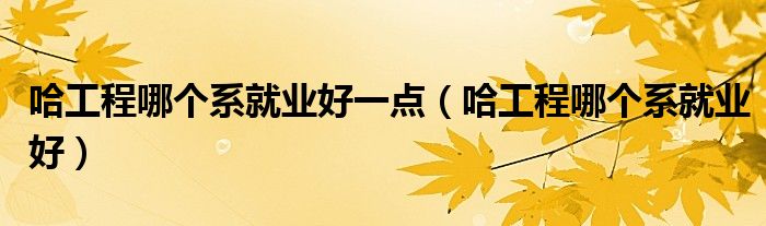 哈工程哪个系就业好一点(哈工程哪个系就业好)