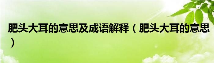 大家好,小晋来为大家解答以下问题,关于肥头大耳的意思及成语解释,肥头大耳的意思很多人还不知道,今天让我们一起来看看吧!