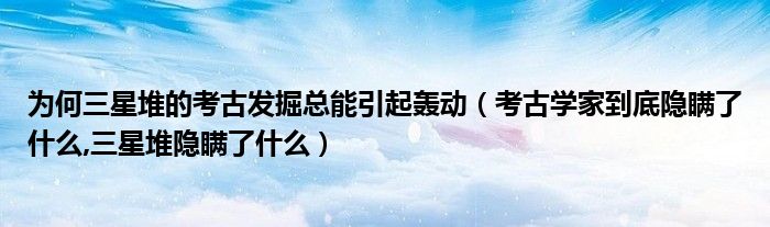 大家好,小常来为大家解答以上问题。为何三星堆的考古发掘总能引起轰动,考古学家到底隐瞒了什么,三星堆隐瞒了什么很多人还不知道,现在让我们一起来看看吧!