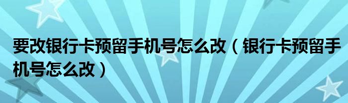 要改银行卡预留手机号怎么改(银行卡预留手机号怎么改)