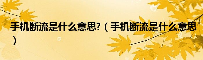 最佳答案大家好,小晋来为大家解答以下问题,关于手机断流是什么意思?,手机断流是什么意思很多人还不知道,今天让我们一起来看看吧!1、手机断网主要是指在使用手机时,突然断网,无法提供互联网服务的情况。这种情况只能通过断开手机网络或者重启手机来缓解。有人说手机断电是因为手机配置不好,其实不然...
