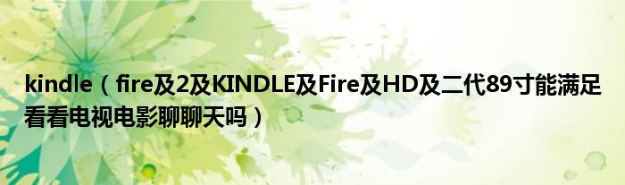 1,KINDLE Fire HD 二代89寸能满足看看电视电影聊聊天吗 :你好,KINDLE Fire HD 二代8.9寸能满足你看看电视电影聊聊天的需求的,这是肯定的。