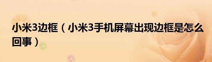 大家好,小常来为大家解答以上问题。小米3边框,小米3手机屏幕出现边框是怎么回事很多人还不知道,现在让我们一起来看看吧!