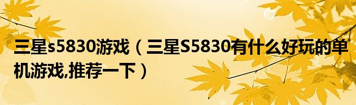 12,三星s5830i能玩哪些游戏? :三星s5830i有些50m的游戏能玩而有些却不行,这都是不一定,上面有些人都是乱说的,我的手机就是三星s5830i,有些大型游戏能玩,而有些小的反而不行,大的有极品飞车12,300多m,地牢猎手900多m,等等,而小的就比如说圣庙逃亡,在此再给你推荐一个游戏画面相当不错英雄守卫3,还有能玩找你妹,想要运行一些大型的游戏你可以去下载3D神器,纯手打,希望能够被采纳