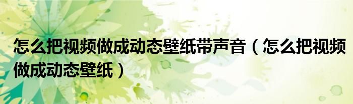 大家好,小晋来为大家解答以下问题,关于怎么把视频做成动态壁纸带声音,怎么把视频做成动态壁纸很多人还不知道,今天让我们一起来看看吧!
