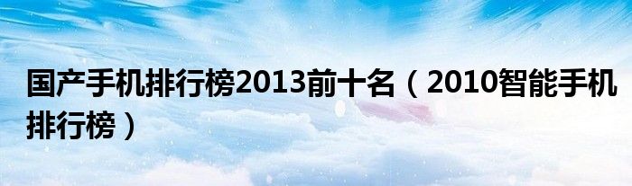 大家好,小常来为大家解答以上问题。国产手机排行榜2013前十名,2010智能手机排行榜很多人还不知道,现在让我们一起来看看吧!