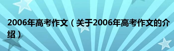 大家好,今天小乐来为大家解答以上的问题。2006年高考作文,关于2006年高考作文的介绍很多人还不知道,现在让我们一起来看看吧!