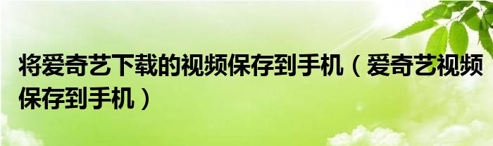大家好,小晋来为大家解答以下问题,关于将爱奇艺下载的视频保存到手机,爱奇艺视频保存到手机很多人还不知道,今天让我们一起来看看吧!