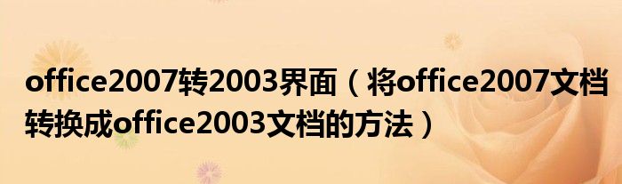 大家好,小太来为大家解答以上问题。office2007转2003界面,将office2007文档转换成office2003文档的方法很多人还不知道,现在让我们一起来看看吧!
