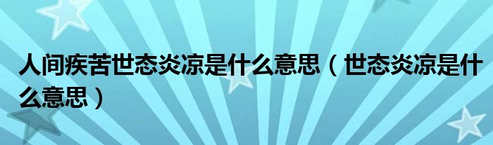 关于人间疾苦世态炎凉是什么意思,世态炎凉是什么意思这个很多人还不知道,今天菲菲来为大家解答以上的问题,现在让我们一起来看看吧!