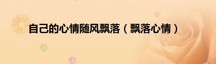 大家好,雨雨来为大家解答以上问题,自己的心情随风飘落,飘落心情很多人还不知道,现在让我们一起来看看吧!