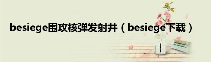 大家好,雨雨来为大家解答以上问题,besiege围攻核弹发射井,besiege下载很多人还不知道,现在让我们一起来看看吧!